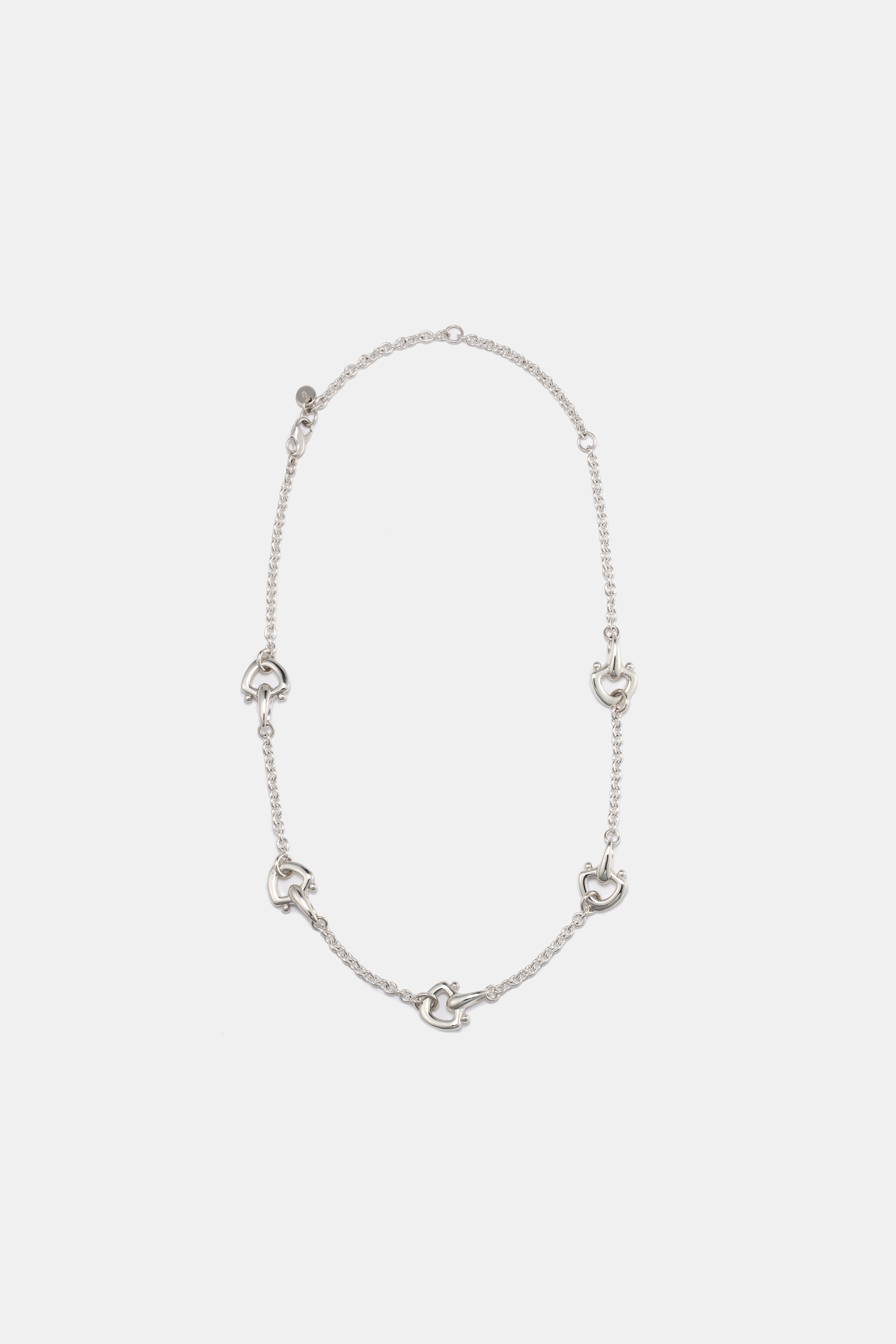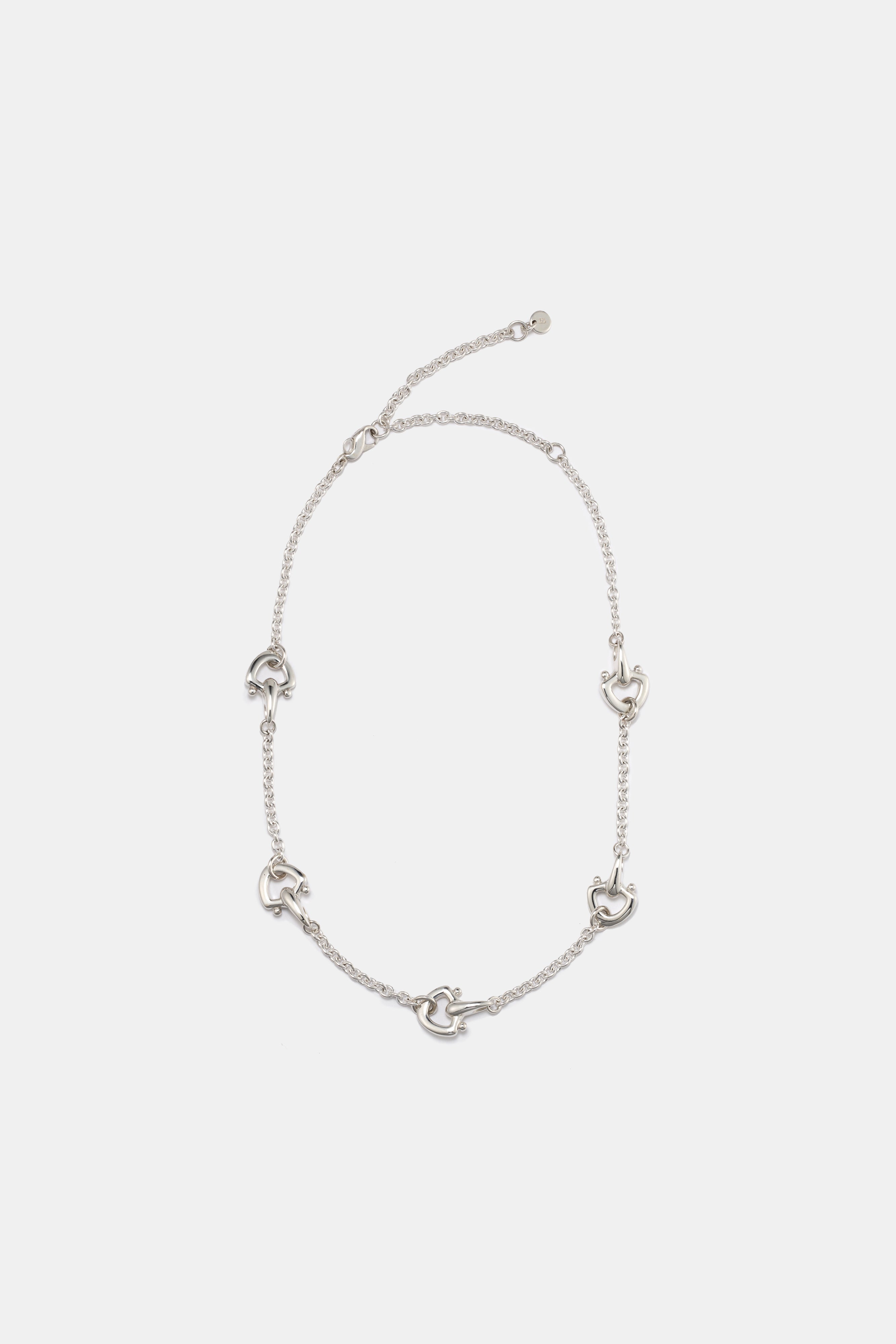 A unique stationary necklace made of five parts connected by a chain.