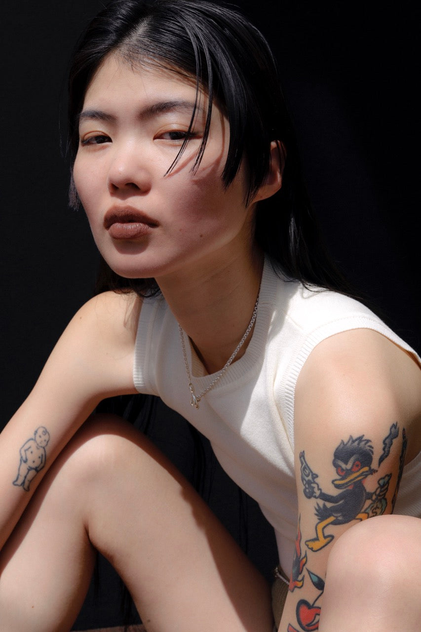 留め具の位置を後ろにすればスタイリングの引き算に、